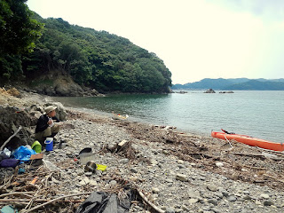 中津浜の裏手にある無人の浜に上陸してランチタイム♪